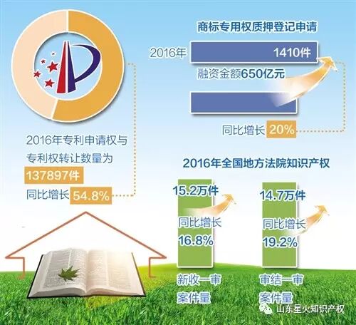 《报告》显示,我国知识产权创造、运用、保护以及知识产权环境水平稳步改善。以知识产权创造为例,2016年共受理发明专利申请133.9万件,连续6年位居世界首位;受理PCT国际专利申请4.1万件,同比增长49.9%;受理商标注册申请369.1万件,连续15年保持世界第一;我国申请人提交的马德里商标国际注册申请3014件,同比增长29.8%;著作权登记量200.8万件,同比增长22.3%;植物新品种权授权2011件,同比增长35.2%。