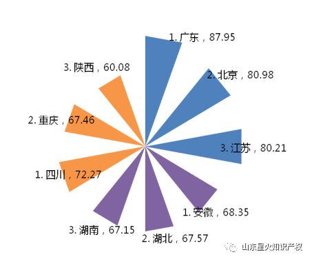 附图2:各区域(东部、中部及东北、西部)专利综合实力前三名情况